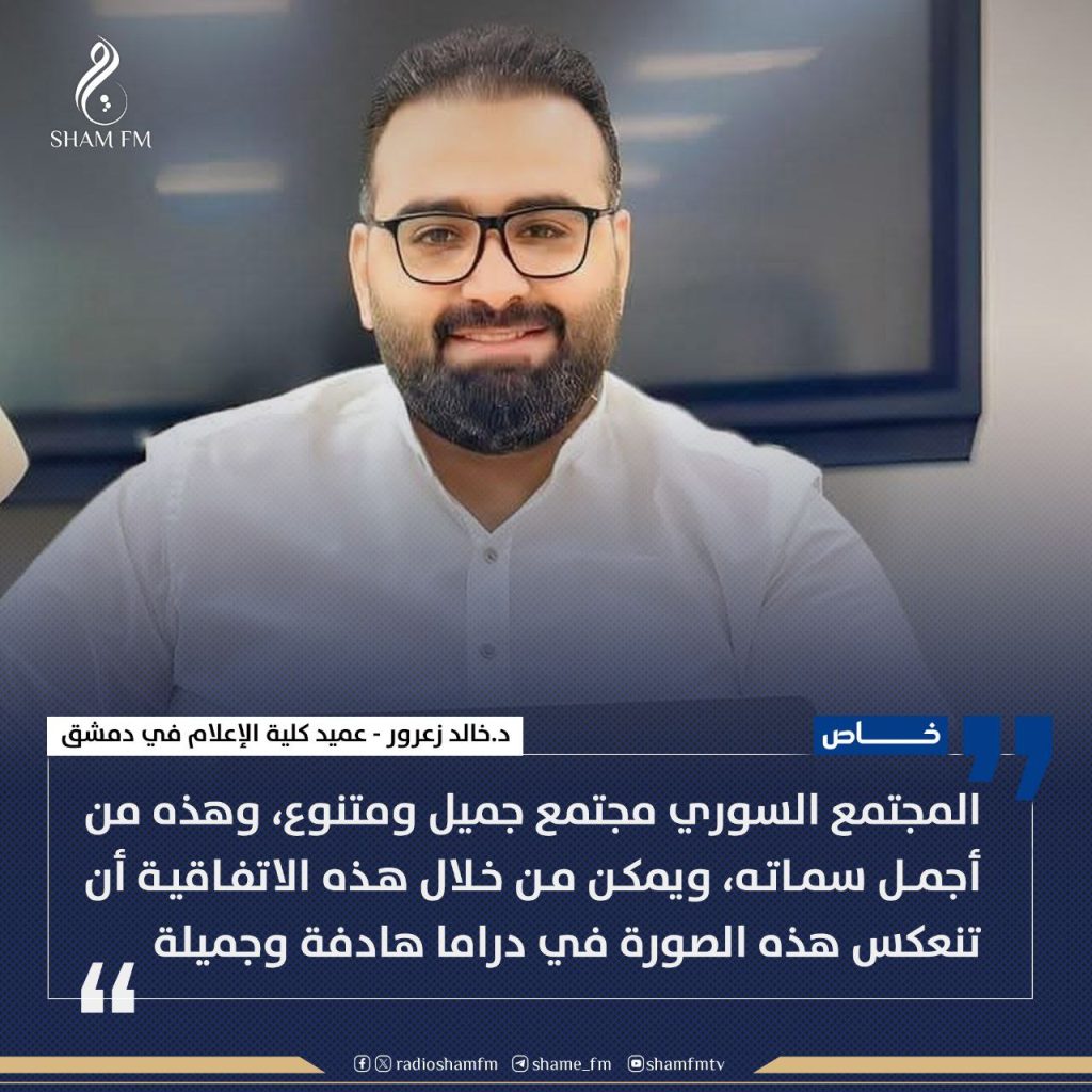 عميد كلية الإعلام في جامعة #دمشق، الدكتور “خالد زعرور” حول مشروع مدينة بوابة دمشق للإنتاج الإعلامي والفني، لـ “شام إف إم”: